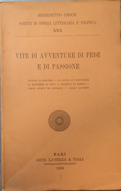Scritti di storia letteraria e politica XXX: Vite di avventure di fede e di passione : Filippo di Fiandra, il conte di Campobasso, il marchese di Vico, Isabella di Morra, Diego duque de Estrada, Carlo Lauberg | Libros antiguos y modernos | Croce Benedetto