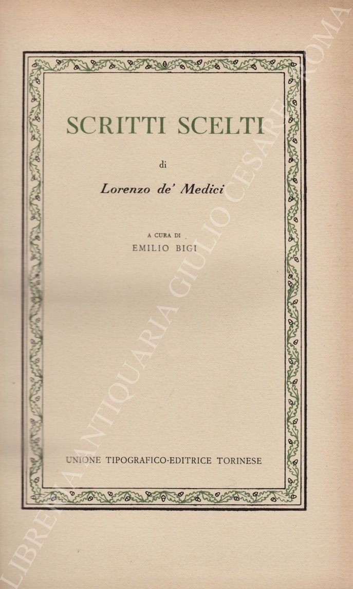 Scritti scelti. A cura di Emilio Bigi | Libros antiguos y modernos | De Medici Lorenzo
