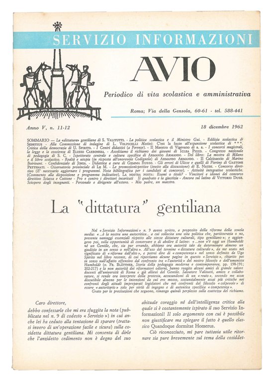 Servizio informazioni Avio. Periodico di vita scolastica e amministrativa. Lotto di 24 fascicoli: anno III, nr. 4, 7, 9, 10/11/12; anno IV, dal nr. 1-12; anno V, dal nr. 1-12; anno VI, nr. 1/2, 3/4, 5.