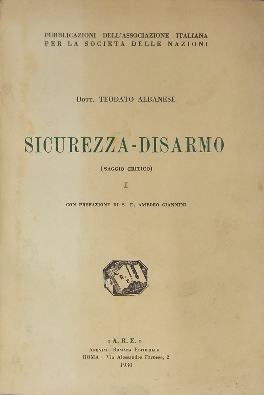 Sicurezza-disarmo. (Saggio critico). Vol. I - Con prefazione di S. E. Amedeo Giannini (unico pubblicato) | Libros antiguos y modernos | Albanese Teodato