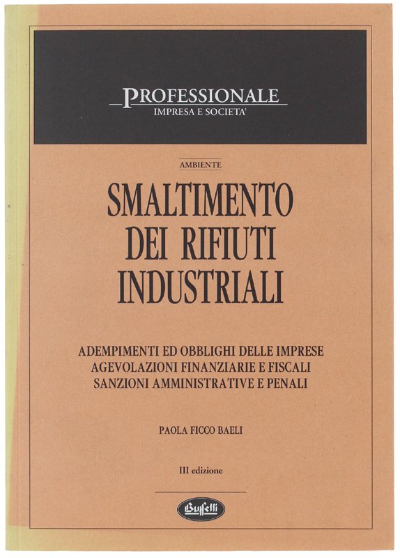 SMALTIMENTO DEI RIFIUTI INDUSTRIALI. Adempimento ed obblighi delle imprese. Agevolazioni finanziarie e fiscali. Sanzioni amministrative e penali. | Libros antiguos y modernos | Ficco Baeli Paola.