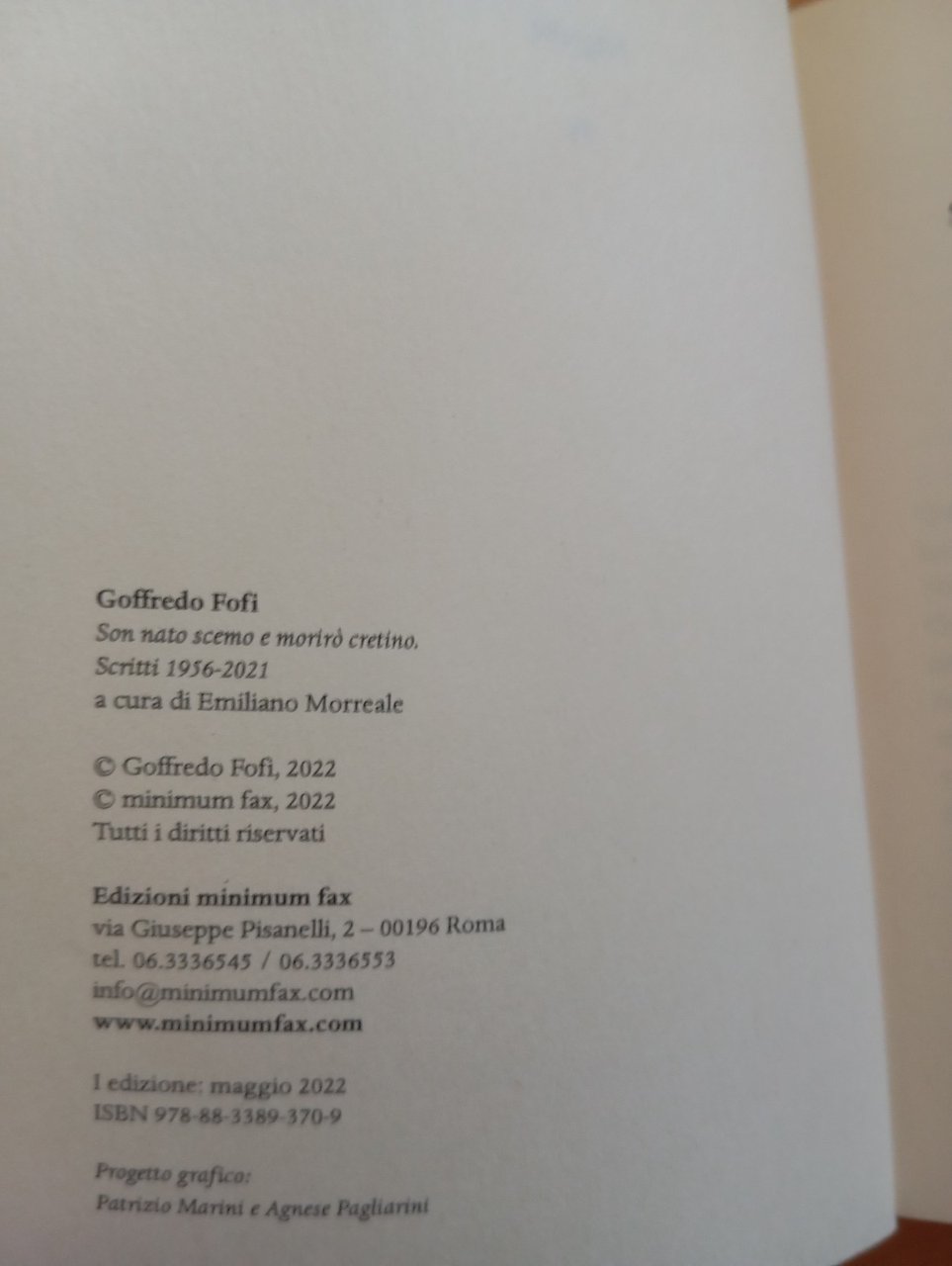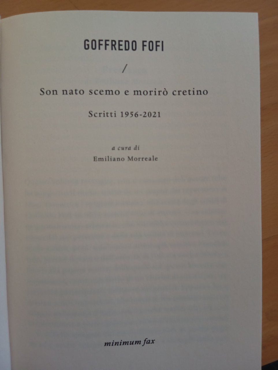 Sono nato scemo e morirò cretino, scritti, Goffredo Fofi, Minimum fax, 2022