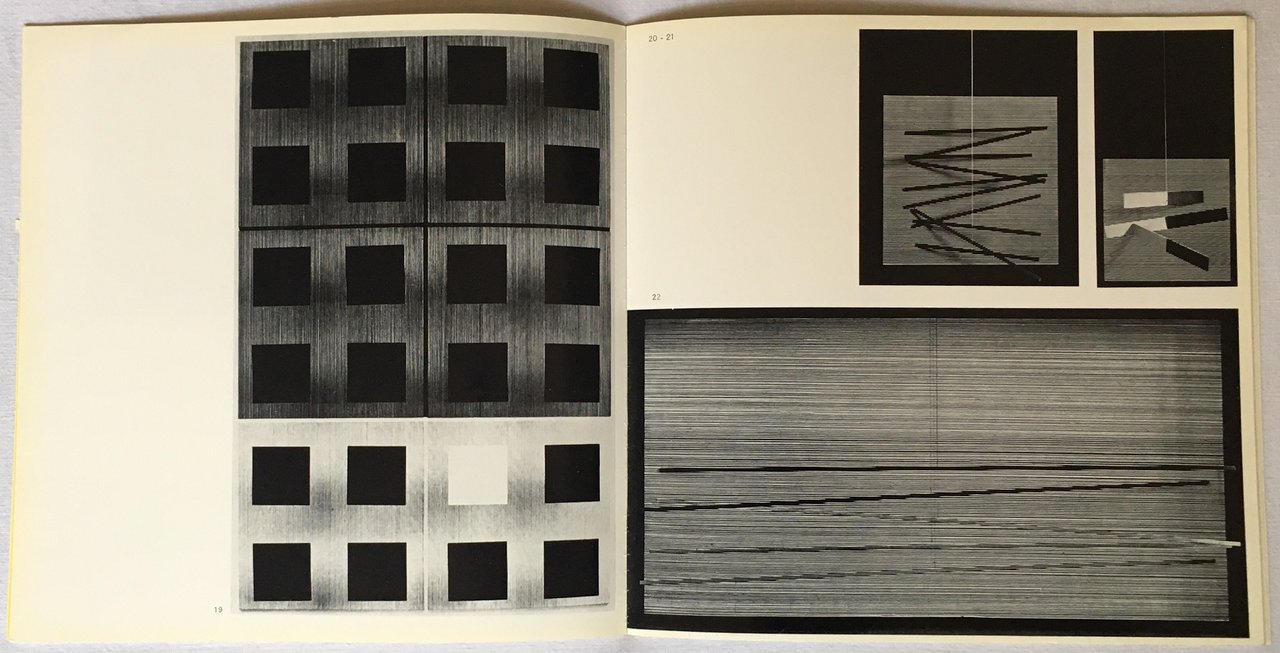 Catalogo della mostra tenutasi presso la Galerie Denise René, Parigi, maggio - giugno 1967. Testo di Jean Clay. 31 illustrazioni a colori e in bianco e nero. Alcune fotografie in bianco e nero di André Morain, Cy Perry, Cornel Capa. Biografia dell'Artista Copertina fustellata. 8vo (cm 23x23). pp. 32. . Molto buono (Very Good). . . .