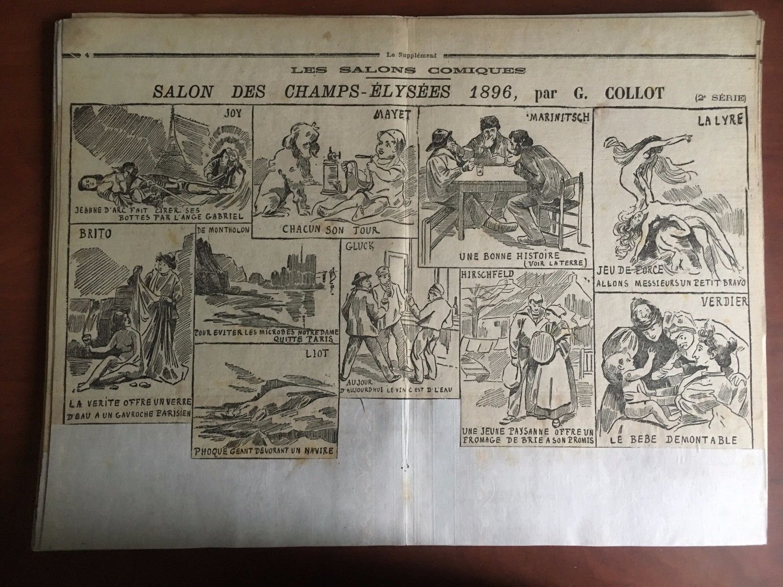 LE SUPPLÉMENTStampa originale fine '800 su cartoncino coevopagina centrale di Le SupplémentSALON DES CHAMPES-ÉLYSÉES 1896 par G. Collotformato stampa 25 cm a scalare x40 cmformato con cartoncino 30x40 cm (30 g circa)in ottimo stato come da foto E22468
