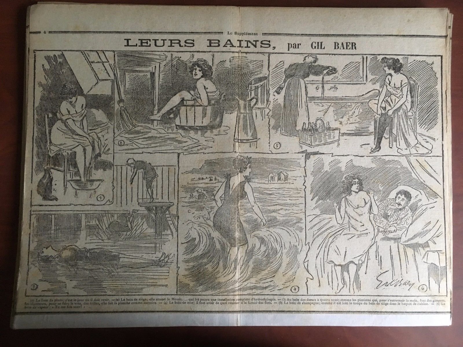 LE SUPPLÉMENTStampa originale fine '800 su cartoncino coevopagina centrale di Le SupplémentLEURS BASIN par Gil Baerformato stampa 28,5x40 cmformato con cartoncino 30x40 cm (30 g circa)in ottimo stato come da foto E22464