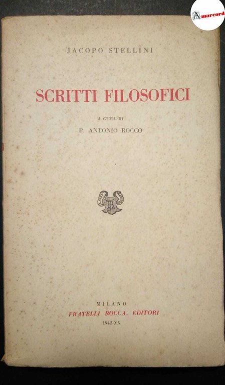 Stellini Jacopo, Scritti filosofici, Bocca, 1942.