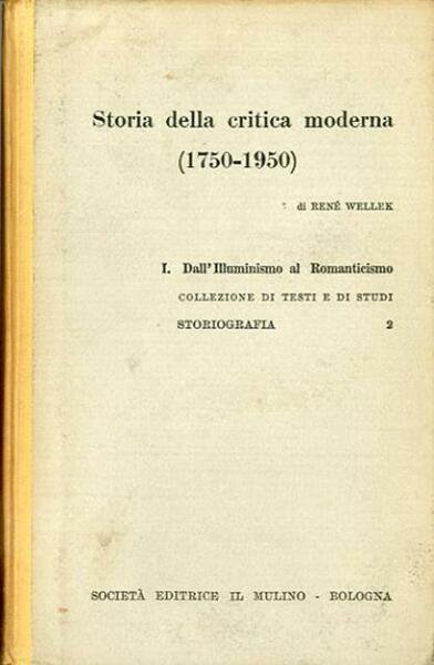 Storia della critica moderna. 1. Dall'Illuminismo al Romanticismo. | Libros antiguos y modernos | Wellek René.