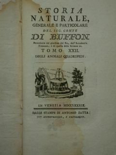 Storia Naturale generale e particolare del sig. conte DI BUFFON intendente del giardino del Re, dell'Accademia Francese, e di quella delle Scienze ec. Tomo XXII degli animali quadrupedi. | Libros antiguos y modernos | Sig. Conte Di Buffon