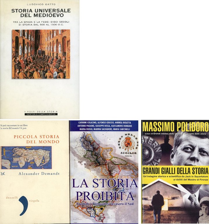 . 8vo. pp. 816. . Ottimo (Fine). . . . Si aggiungo altri 3 libri di storia: 1) Alexander Demandt, Piccola storia del mondo. Donzelli, 2005; 2) Carmine Colacino et al, La storia proibita. Controcorrente, 2001; 3) Massimo Polidoro, Grandi gialli della storia. Piemme, 2004