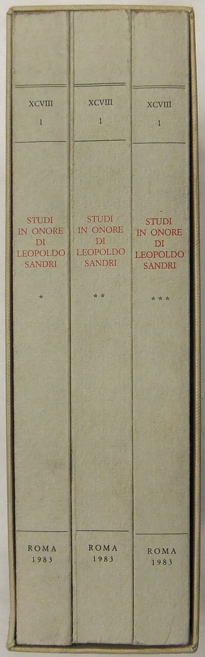 Studi in onore di Leopoldo Sandri. A cura dell'Ufficio Centrale per i Beni Archivistici e della Scuola Speciale per Archivisti e Bibliotecari dell'Università di Roma