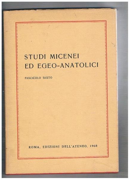 Studi micenei ed egeo-anatolici. Fasc. VI, e vol. XXVII della coll. Incunabula Graeca.