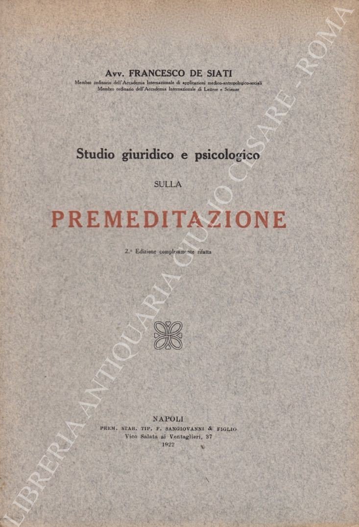 Studio giuridico e psicologico sulla premeditazione | Libros antiguos y modernos | De Siati Francesco