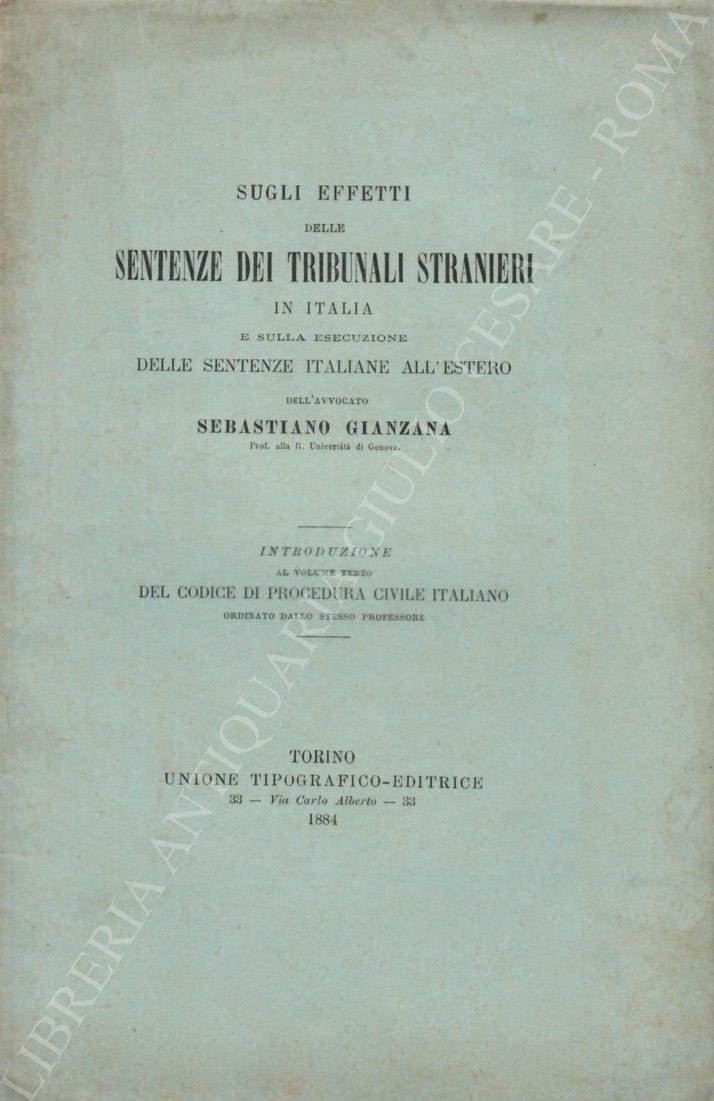 Sugli effetti delle sentenze dei tribunali stranieri in Italia e sulla esecuzione delle sentenze italiane all'estero. Introduzione al volume terzo del Codice di Procedura Civile Italiano | Libros antiguos y modernos | Gianzana Sebastiano