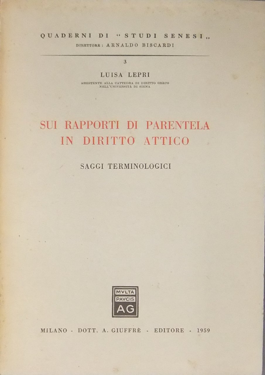 Sui rapporti di parentela in diritto attico. Saggi terminologici | Libros antiguos y modernos | Lepri Luisa