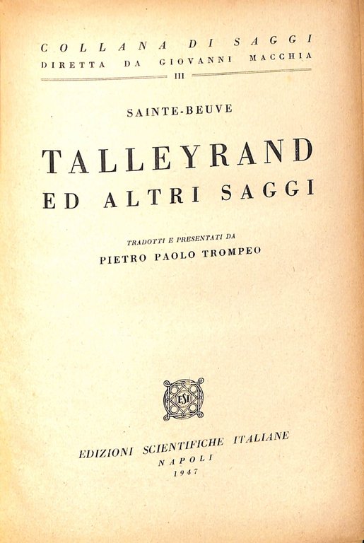 Talleyrand ed altri saggi | Libros antiguos y modernos | Sainte-Beuve