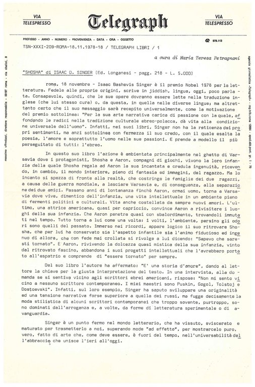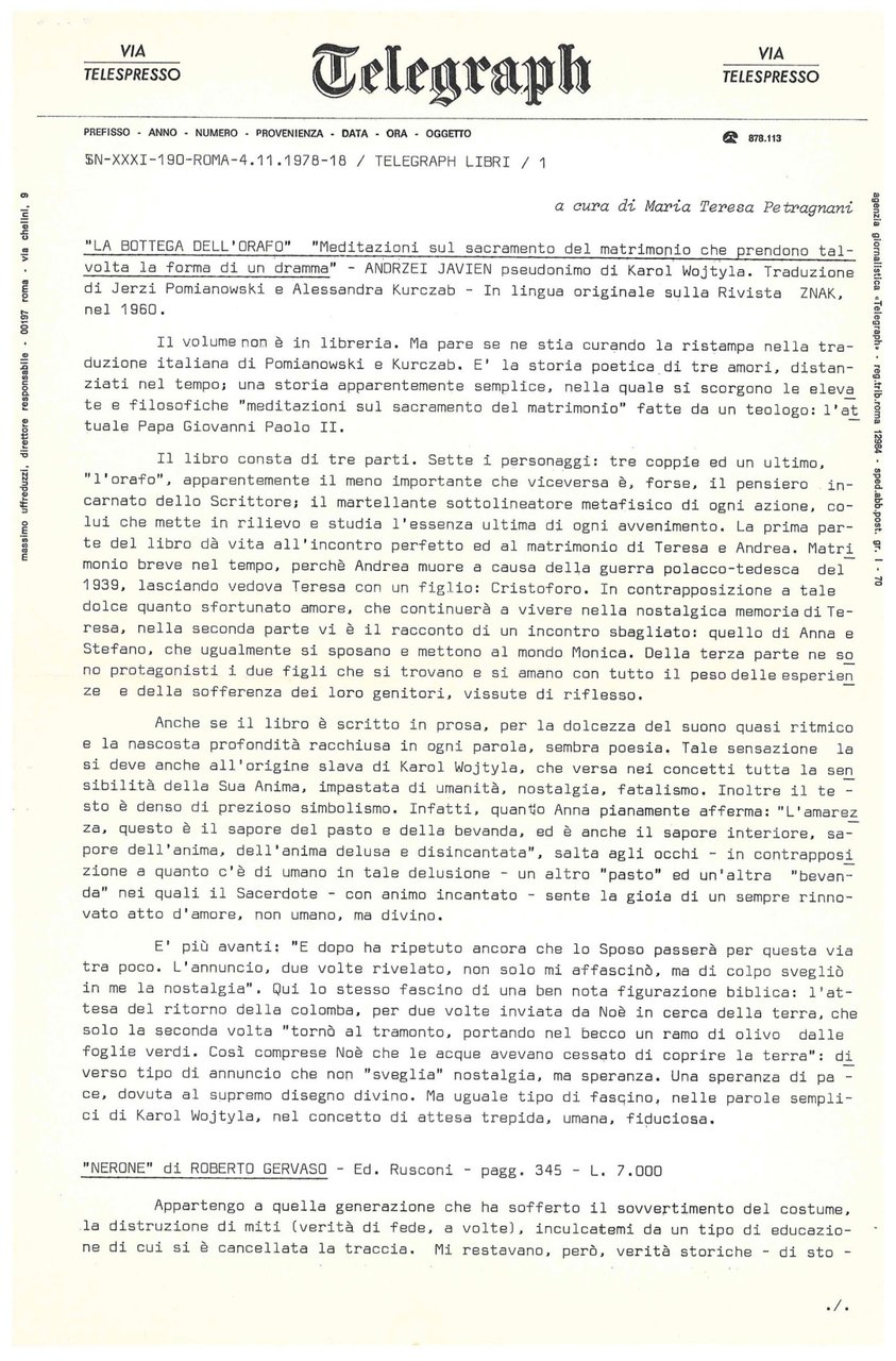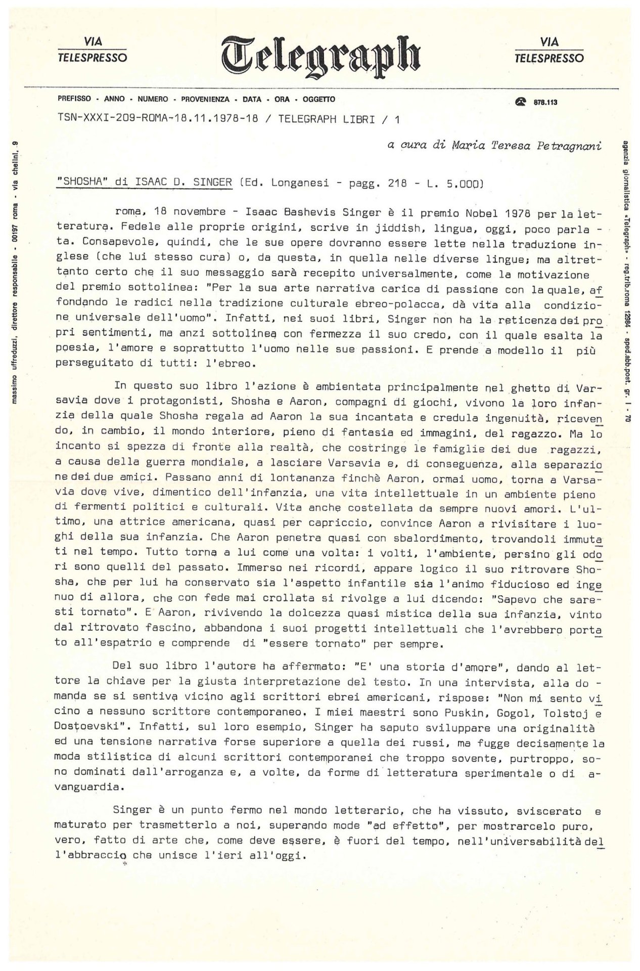 N. 4 novembre 1978, cc. [1] di fogli sciolti;