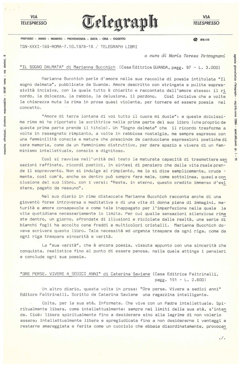 N. 21 ottobre 1978, cc. [3] di fogli sciolti;
