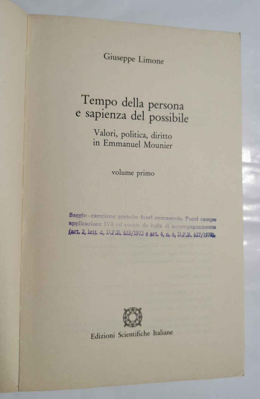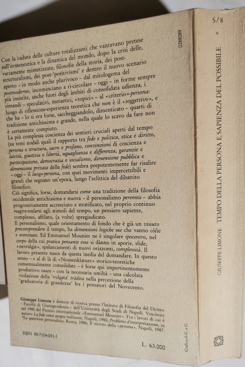 Tempo della persona e sapienza del possibile Vol.I' | Libros antiguos y modernos | Limone, Giuseppe