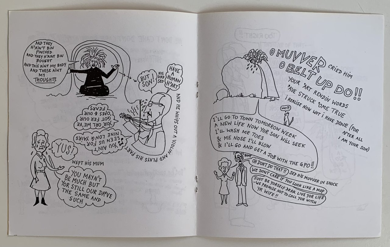 Un fumetto . Cm 17,5x14,5. pp. 12. . Ottimo (Fine). . . . Daevid ha disegnato questo delizioso fumetto per prepararsi alla visita dei suoi genitori.Era leggermente preoccupato di vedere i suoi genitori per la prima volta da quando aveva lasciato l'Australia quasi 10 anni prima. Inutile dire che molte cose erano cambiate da quando, nel 1959, aveva lasciato Oz da beatnik fresco e fondamentalmente privo di "esperienze chimiche"...Questo divertente fumetto su come sarebbe potuto andare l'incontro fu la sua risposta.