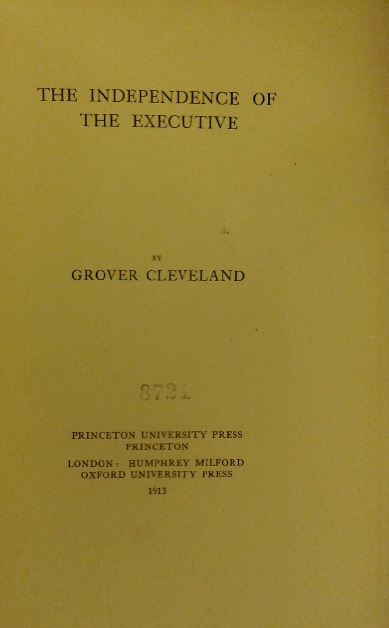 The indipendence of the executive | Libros antiguos y modernos | Cleveland Grover