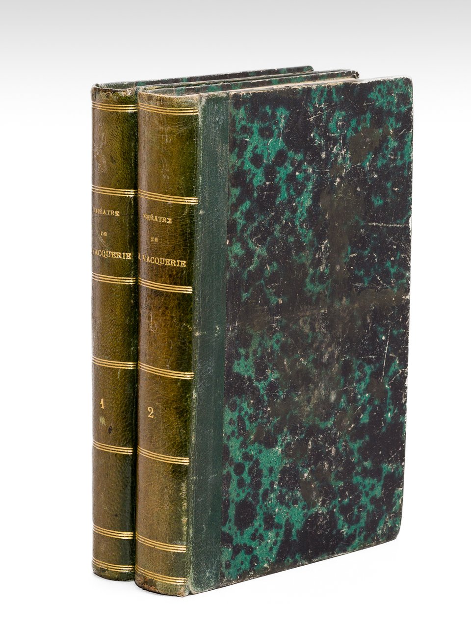 2 vol. in-12 reliure de l'époque demi-basane verte, Calmann Lévy, Ancienne Maison Lévy, 1879, 2 ff., 274 pp. et 1 f. n.ch. ; 2 ff., 322 pp. et 1 f. n. ch. Bon état pour cet exemplaire dédicacé par Auguste Vacquerie à l'écrivain Casimir Pertus, récompensé en 1872 du Prix Maillé-Latour-Landry de l'Académie Française pour sa tragédie "Scanderberg". Bon état (pettis frott., petites mouill. angulaire, bon exemplaore par ailleurs, ex-libris en garde). Vicaire, VII, 938