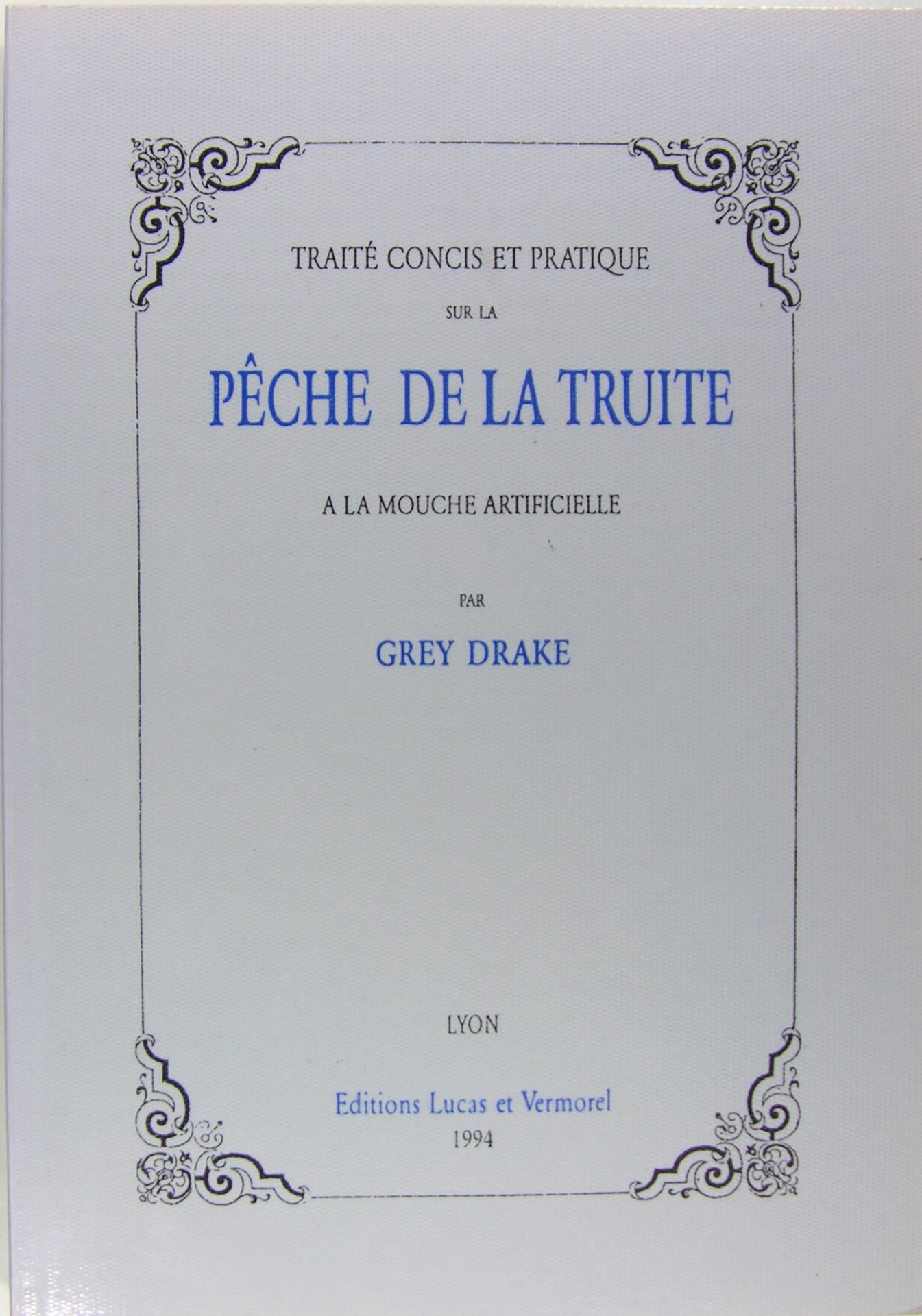 1994 Lyon, Editions Philippe Lucas, 1994. In/8 broché, couverture imprimée, 55 pages. Réimpression à petit nombre de ce magistral traité sur la pêche de la truite à la mouche artificielle. L’édition originale, très rare, date de 1863.