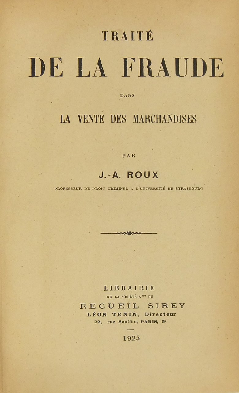 Traite de la fraude dans la vente des marchandises | Libros antiguos y modernos | Roux Jean Andre