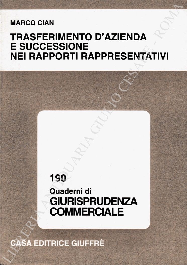 Trasferimento d'azienda e successione nei rapporti rappresentativi | Libros antiguos y modernos | Cian Marco