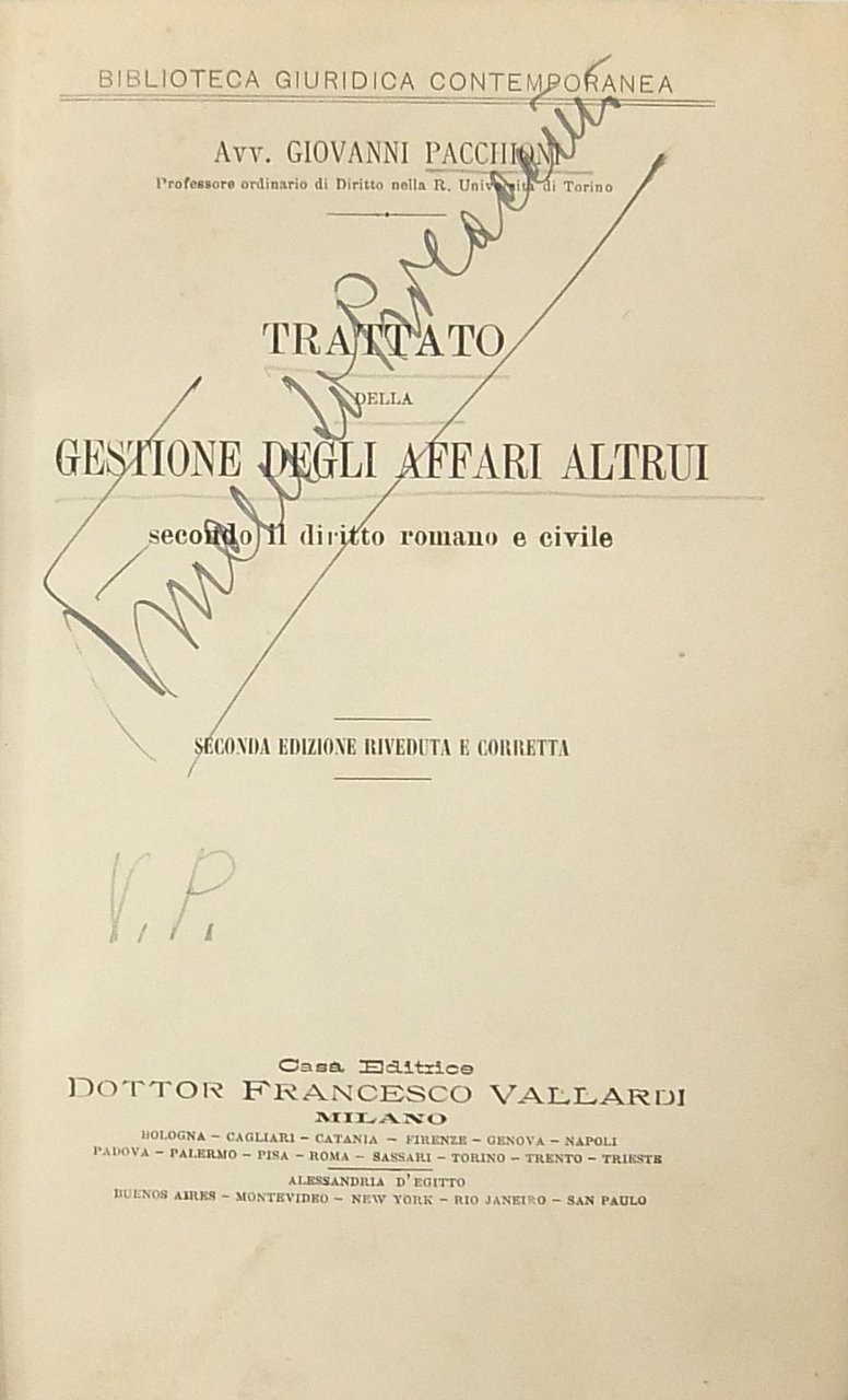 Trattato della gestione degli affari altrui secondo il diritto romano e civile | Libros antiguos y modernos | Pacchioni Giovanni (1867-1946)