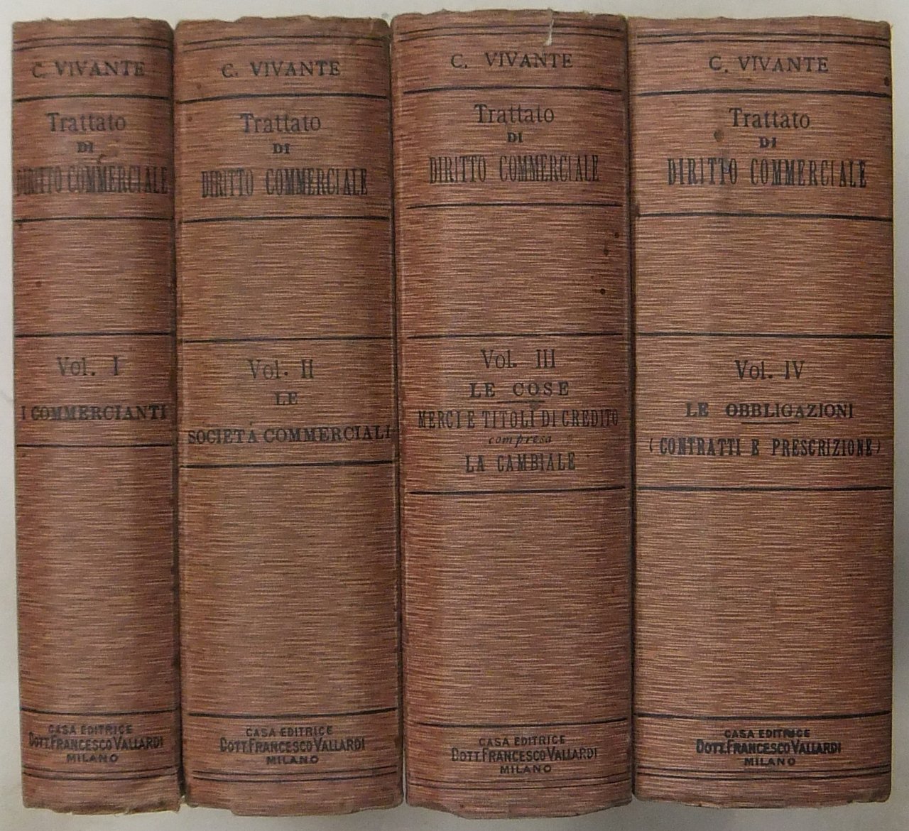 Trattato di diritto commerciale. Vol. I - I commercianti. Vol. II - Le società commerciali. Vol. III - Le cose (Merci e titoli di credito compresa la cambiale). Vol. IV - Le obbligazioni (contratti e prescrizione) | Libros antiguos y modernos | Vivante Cesare (1855-1944)