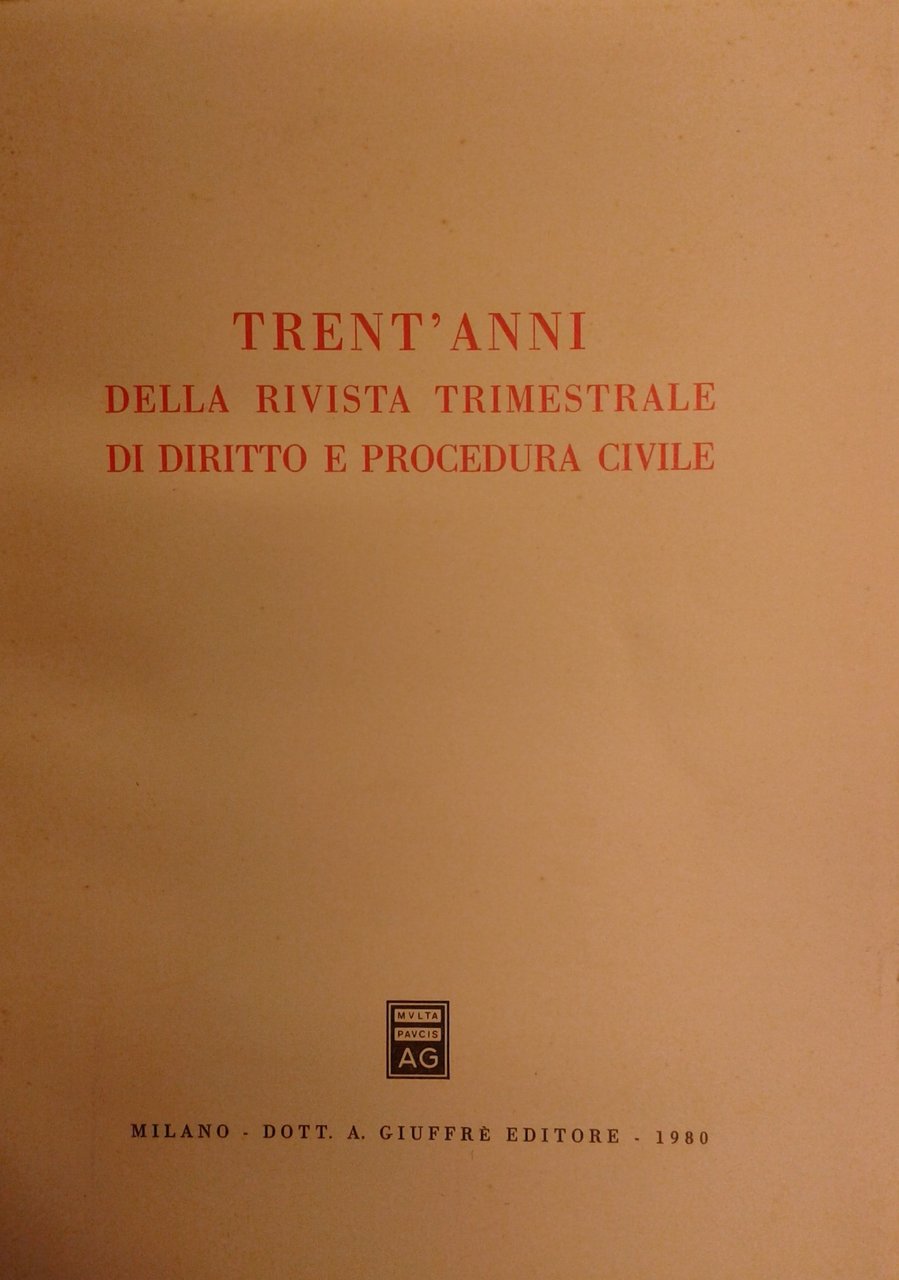 Trent'anni della rivista trimestrale di diritto e procedura civile | Libros antiguos y modernos | Autori Vari