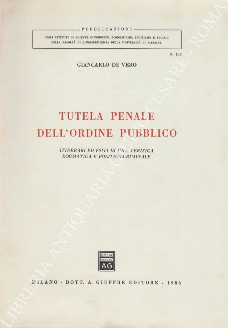 Tutela penale dell'ordine pubblico. Itinerari ed esiti di una verifica dogmatica e politico-criminale | Libros antiguos y modernos | De Vero Giancarlo