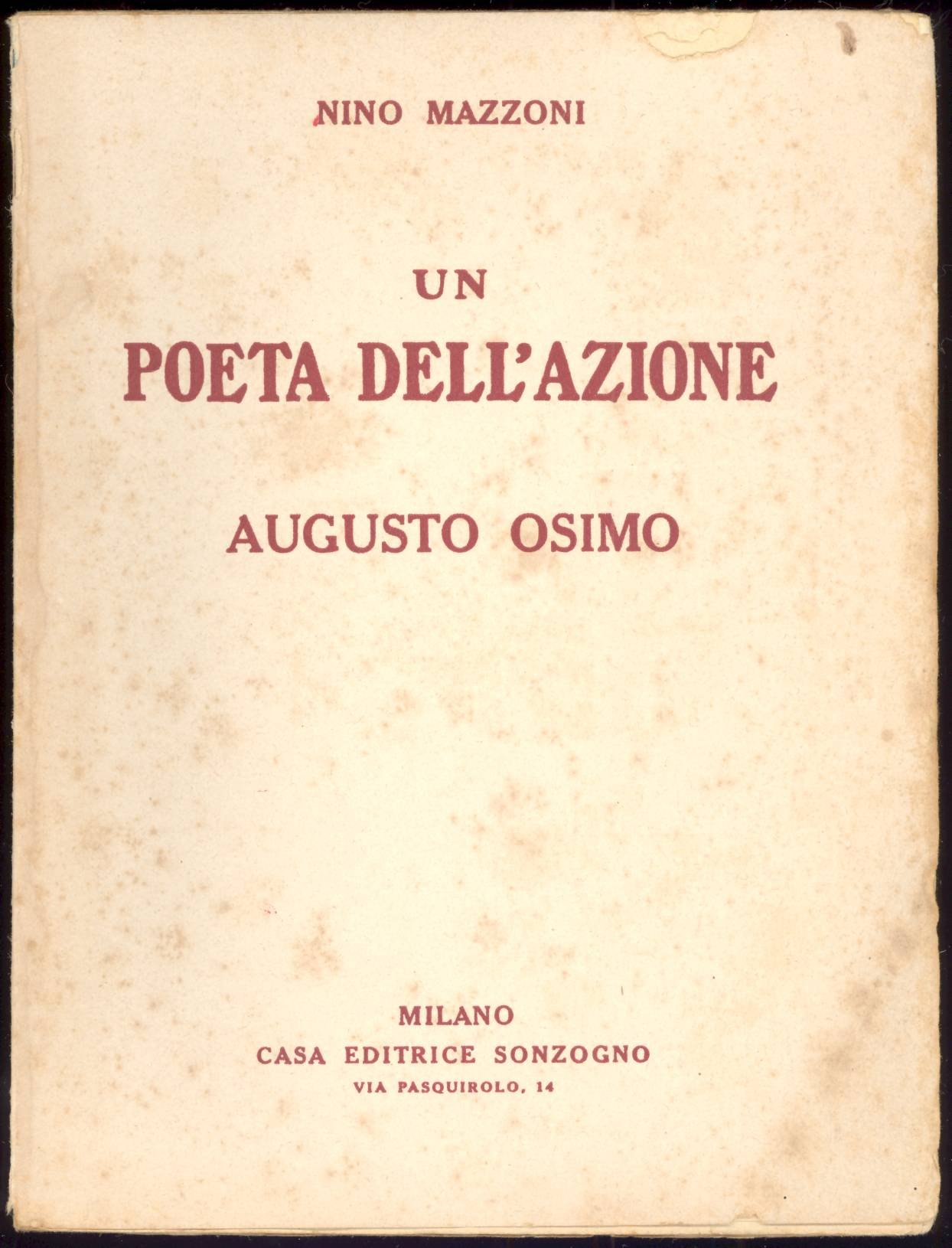 Un poeta dell'azione. Augusto Osimo | Libros antiguos y modernos | MAZZONI Nino,