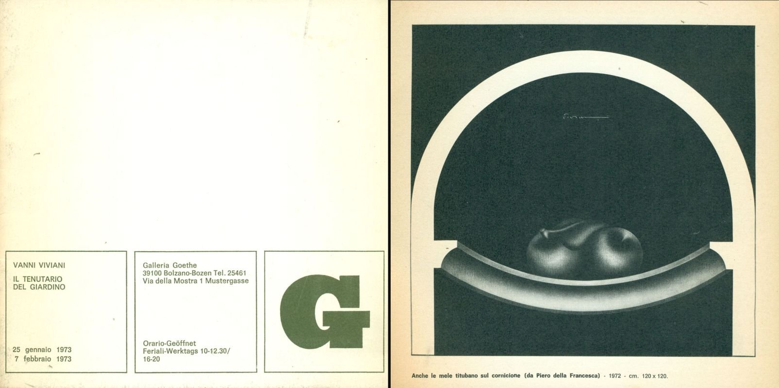 Catalogo di mostra, Bolzano, Galleria Goethe, 25 gennaio - 7 febbraio 1973. Testo di Walter Schonenberger. Con 5 tavole in bianco e nero. Attività espositiva dell'Artista . 8vo. pp. 12 non numerate. . Molto buono (Very Good). . . .