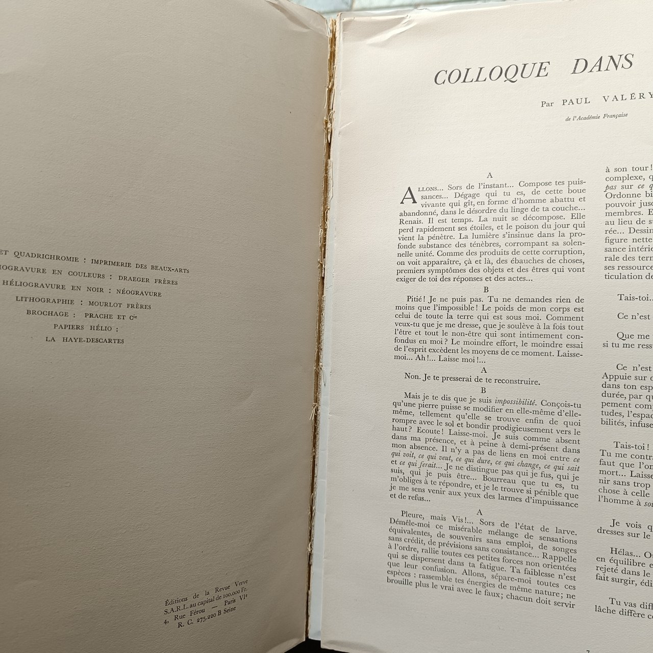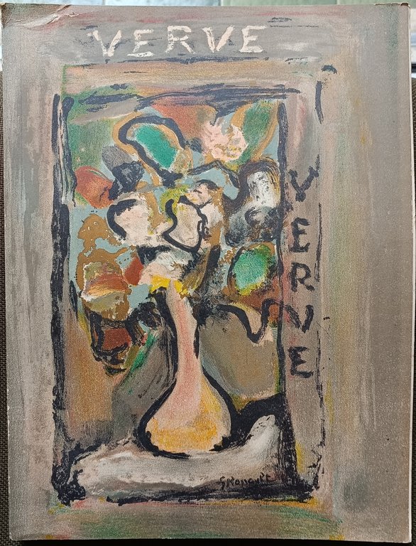 Contributions littéraires par Paul Valéry, Pierre Reverdy, Rainer Maria Rilke, Henri Michaux, Jules Supervielle, Georges Bataille, Jean-Paul Sartre, Ambroise Vollard, Georges Rouault et Roger Caillois. Lithographie (reproductions en couleurs): Tacuinum Sanitatis, livre de santèdu XIV siecle. "La Dance"sur double page, par Henri Matisse; "Le Jardin d'Hallah" sept lithographies par André Derain, tirées par Mourlot. Nombreuses reproductions en héliogravure, souvent à pleine page, de photographies par Brassaï, Barna, Maywald, Devaux-Maywald, Erwé, Bille Brandt, et al. Couverture composée par Georges Rouault. Cm 36x27. pp. 134. . Buono (Good). Cerniera anteriore rotta. Mancano le pagine da 9 a 16 e da 19 a 24 (Broken front hinge. Pages 9 to 16 and 19 to 24 missing). . .