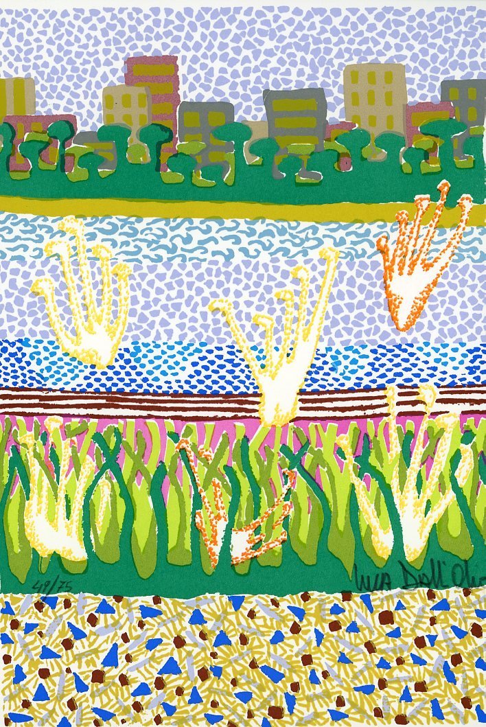 Con una serigrafia originale a colori, numerata e firmata, di Luca Dall'Olio, stampata in 75 esemplari (cm 19,2x13,2) Es. 52/75. 16mo. pp. 12. . Ottimo (Fine). . Prima edizione di 150 es. numerati. Letteratura italiana del 900 [Gambetti, 2007] Gambetti Lucio, Vezzosi Franco, Rarità bibliografiche del Novecento italiano. Repertorio delle edizioni originali. Milano, Edizioni Sylvestre Bonnard, 2007.