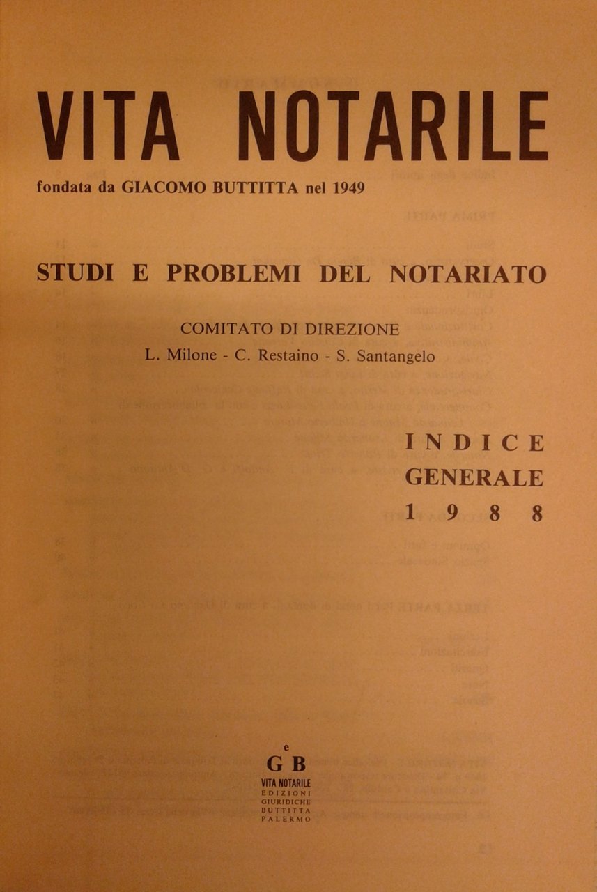 G e B Vita Notarile. Edizioni Giuridiche Buttitta, 1988