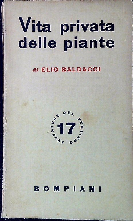 Baldacci, Elio Vita privata delle piante. Milano, Bompiani 1937, 242 p., [16] p. di tav. : ill. ; 21 cm. (74707)