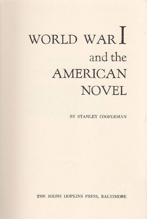 World War I and the American Novel | Libros antiguos y modernos | COOPERMAN Stanley