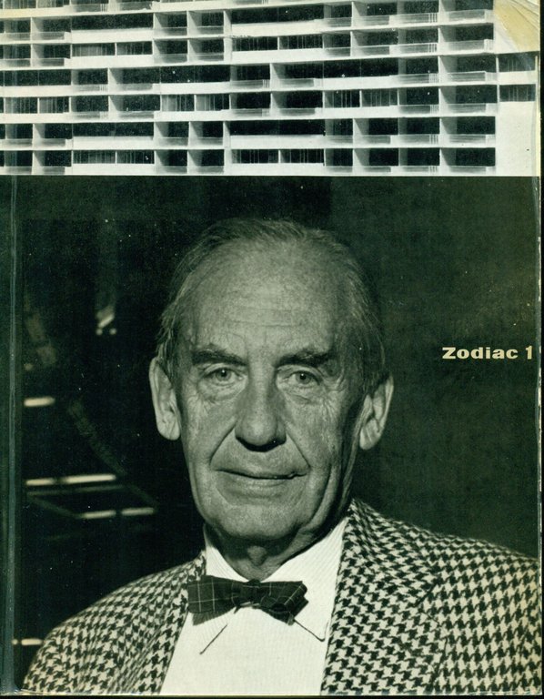 Anno I, n. 1. Dal sommario: Adriano Olivetti: Una nuova rivista d'architettura. Walter Gropius: Apollo in the democracy. Ulrich Conrads: Revolution, Evolution, Konvention. Giulio Carlo Argan: Architettura e ideologia. S. Giedion: History and the Architect. Victor Pasmore: Connection between Painting, sculpture and Architecture. Ettore Sottsass Jr: Struttura colore e luce. F. Bettonica e G.F. Frattini: Recenti tendenze dell'architettura civile in Italia. Peter Blake: The vanishing american House. Ernesto N. Rogers: tradizione e attualità nel disegno. Giulia Veronesi: Una struttura di P.L. Nervi a Parigi. Arthur Drexler: Buildings for business and Government in America. W. Sandberg: centre commercial pour pietons a Rotterdam. Les grands magasins de Rotterdam. Victor Gruen: the planned shopping centre in America. E. Maxwell Fry: The Cooper Taber factory. Factory at Hemel Hempstead. Victor Bourgeois: Lettre de Bruxelles: salut au Constructivisme. Lucien Hervè: Lettre de Paris: une proposition. Giuseppe Mazzariol: l'exposition internationale d'architecture a la Triennale. P. C. Santini: deux gratte-ciel a Milan. Riccamente illustrato in bianco e nero . Cm 27x21. pp. 276. . Molto buono (Very Good). Copertina leggermente sciupata (Lightly soiled cover). . . Uscita in 22 fascicoli tra il 1957 e il 1973, la rivista Zodiac, fondata da Adriano Olivetti, è stata un punto di riferimento e una finestra ampia e luminosa aperta sul dibattito architettonico internazionale.