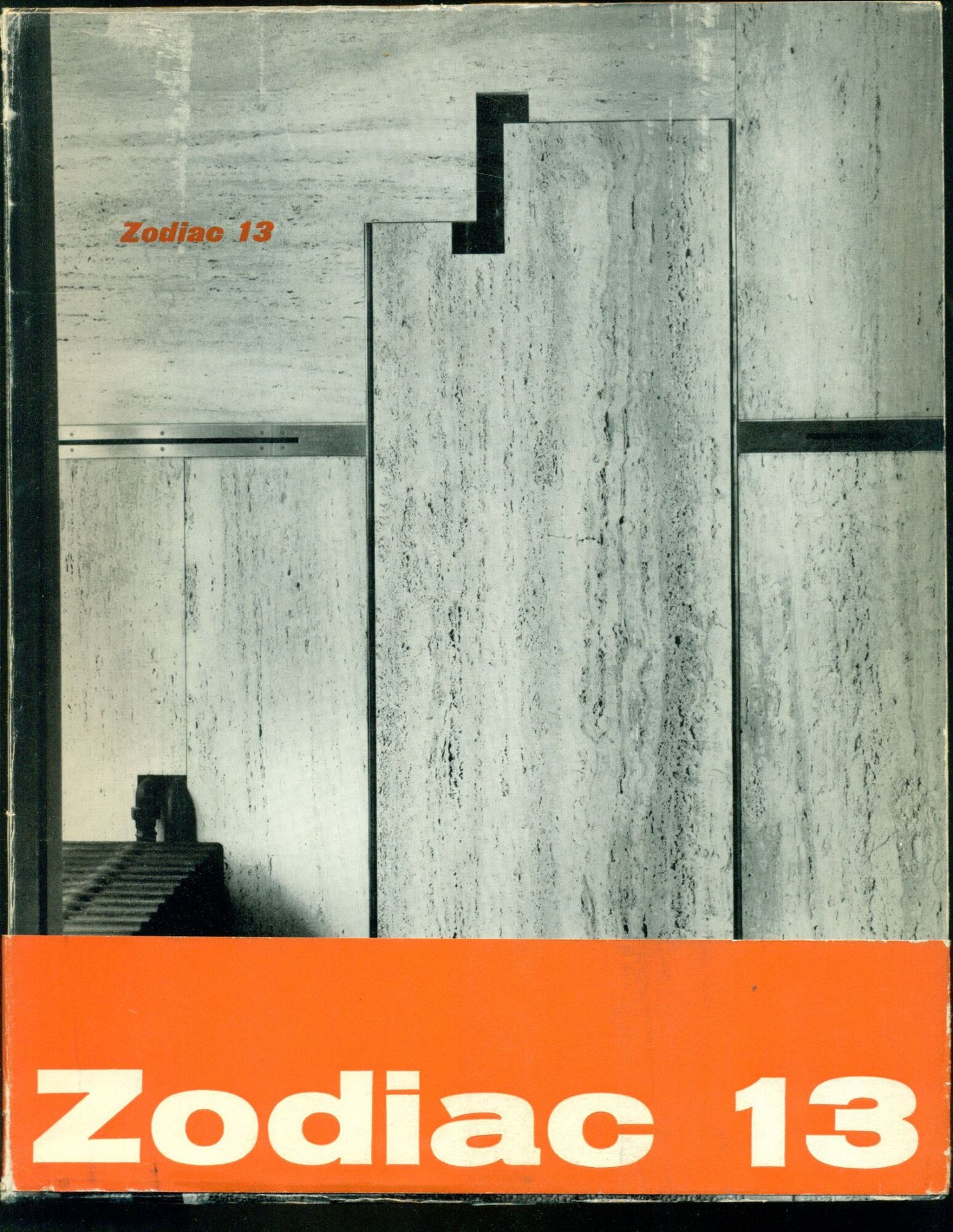 Dal sommario: Henry Russel Hitchccock: Connecticut USA in 1963. Giuseppe Mazzariol: Un'opera di Carlo Scarpa: il restauro di un antico palazzo veneziano. Italo Insolera: I grandi viadotti di Eiffel nel Massif Central. Alberto Samonà: L'esperienza dei grandi ensambles e il rinnovamento della struttura urbana. Margit Staber: Exsposition Nationale Suisse, Lausanne 1964. J. R. Rudin: Unseen exibit of the New York world's fair 1964-65. Ester McCoy: Young architects in United States. Numerose illustrazioni in bianco e nero e a colori . Cm 27x21. pp. 241. . Molto buono (Very Good). Copertina un po' sciupata ai margini con strappetti e mancanze (Some chipping and nicks around top and bottom of cover). . . Uscita in 22 fascicoli tra il 1957 e il 1973, la rivista Zodiac, fondata da Adriano Olivetti, è stata un punto di riferimento e una finestra ampia e luminosa aperta sul dibattito architettonico internazionale.