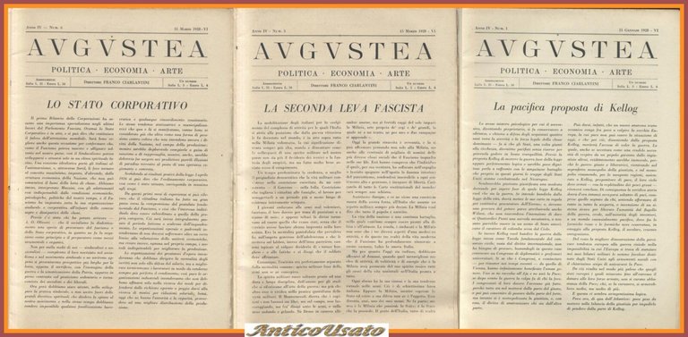 AUGUSTEA 3 Riviste di Politica Economia Arte numeri 1 5 6 del 1928 Fascismo