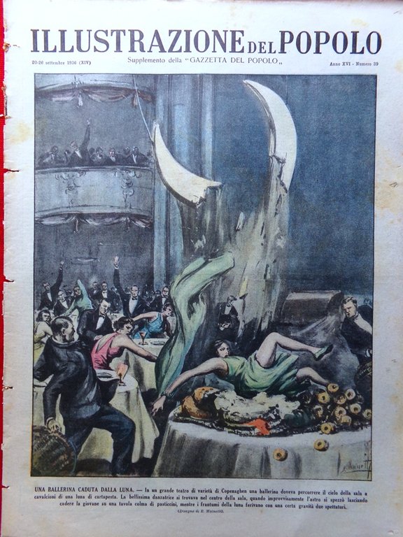 Una ballerina caduta dalla luna - in un grande teatro di varietà di Copenaghen una ballerina doveva percorrere il cielo della sala a cavalcioni di una luna di cartapesta. La bellissima danzatrice si trovava nel centro della sala, quando improvvisamente l'astro si spezzò lasciando cadere la giovane su una tavola colma di pasticcini, mentre i frantumi della luna ferivano con una certa gravità due spettatori (E. Mainetti)