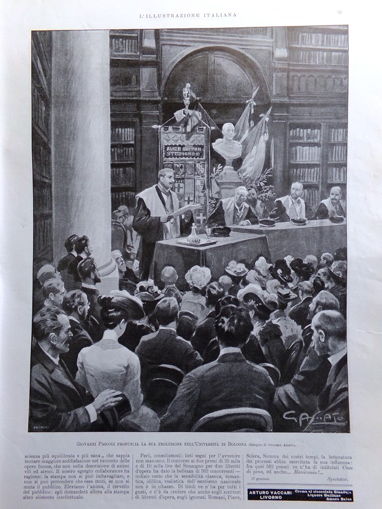 Giovanni Pascoli pronuncia la sua prolusione nell'Università di Bologna (G. Amato)
