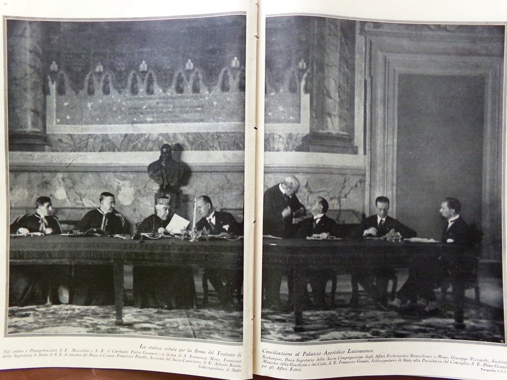 La storica firma dei Patti Lateranensi: il duce e il cardinale Gasparri, la seduta per la firma del Trattato di Conciliazione, il Pontefice benedice il popolo dopo la Conciliazione