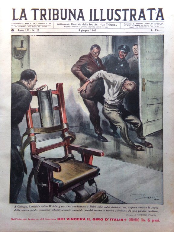 A Chicago, l'omicida Julius Weisberg era stato condannato a finire sulla sedia elettrica; ma, appena varcata la soglia della camera fatale, rimaneva improvvisamente immobilizzato dal terrore e moriva fulminato da una paralisi cardiaca (disegno di Vittorio Pisani)