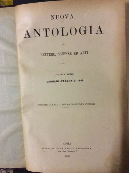 NUOVA ANTOLOGIA DI LETTERE SCIENZE ED ARTI. - Quinta serie.