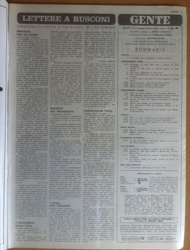 Rivista Magazine - Gente - 13 Agosto 1969 - Milva - Mina - Apollo 11 - Paolo VI