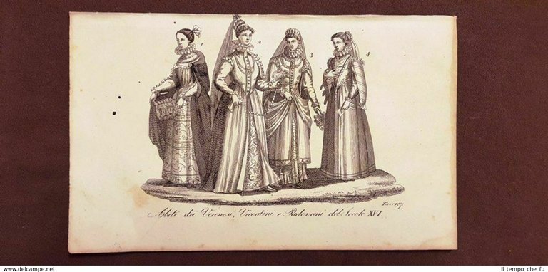 Abiti di Verona, Vicenza e Padova del sec. XVI (2) Acquaforte del 1830 Ferrario