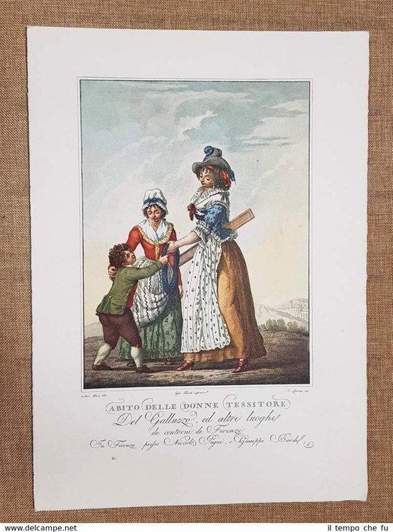 Abito Donne tessitore del Galluzzo Costume Toscana Bicci Lasinio Ristampa 1970